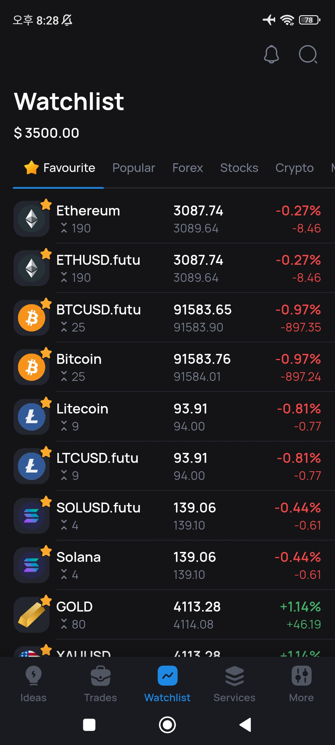 통화 쌍 외에도 지수, 주식, 금속, 에너지, 암호화폐 등 총 7개 자산군을 거래할 수 있어 전략 적용 범위가 넓습니다.